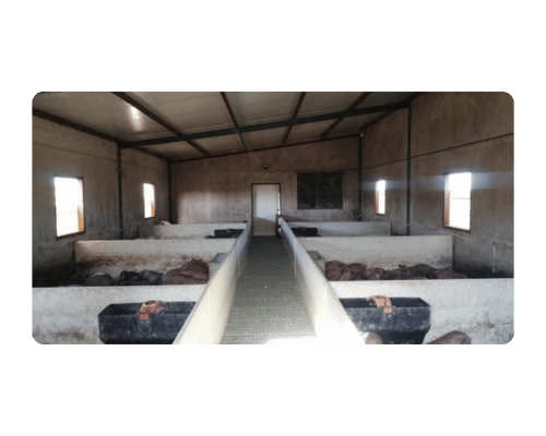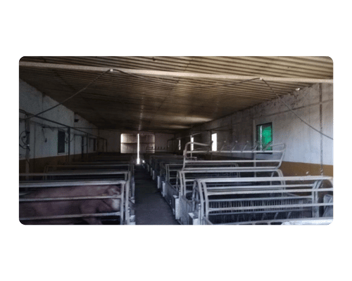 Edificaciones Ganaderas.Se anexa a la derecha de la Nave principal y cuenta con una superficie de 175 m2 (7 x 25 m). En su interior cuenta con “camisas” destinadas a las parideras de cochinos.